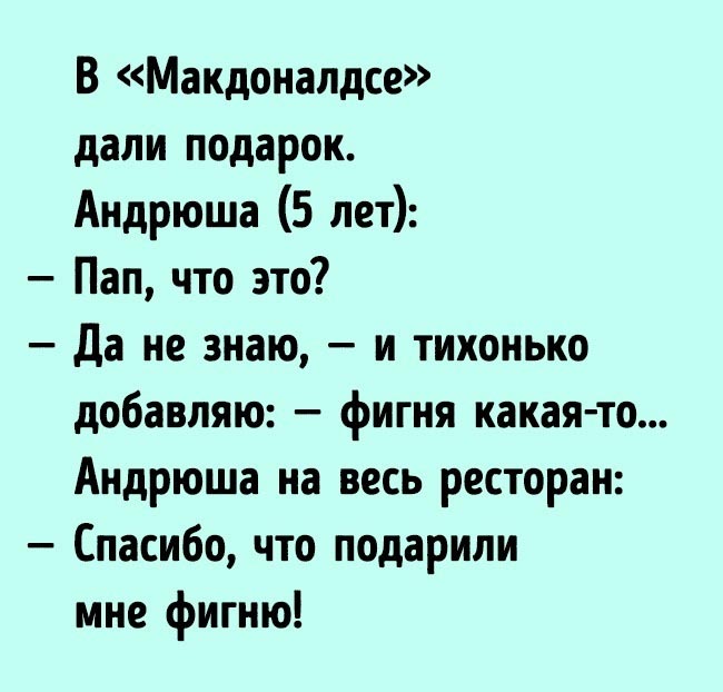 Напротив меня в автобусе сидит семья. Мама, папа и сын. Мальчику лет 5. Они тихо разговаривают и никого не трогают. Маршрутка остановилась на светофоре. Тут в голос мальчик спрашивает у мамы: «Мам, мы в попке?» Людей в транспорте было немного, но все переглянулись и улыбнулись. Едем дальше. Закрыт переезд. Малыш смотрит, что и впереди и сзади много машин. И снова на весь автобус: «МА-А-АМ, МЫ В ПО-О-О-ОПКЕ-Е-Е?» Людей уже было больше. Смеялись все.